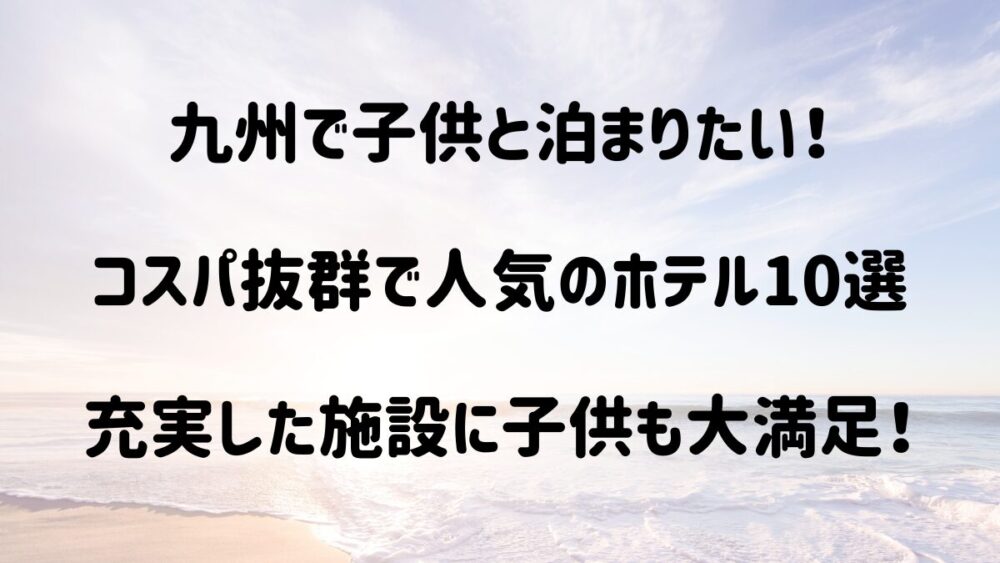 今回は、九州各県から厳選した、パパやママもゆったり過ごせて、お子様も大興奮すること間違いなしの、コスパ抜群なホテル10選をご紹介します。