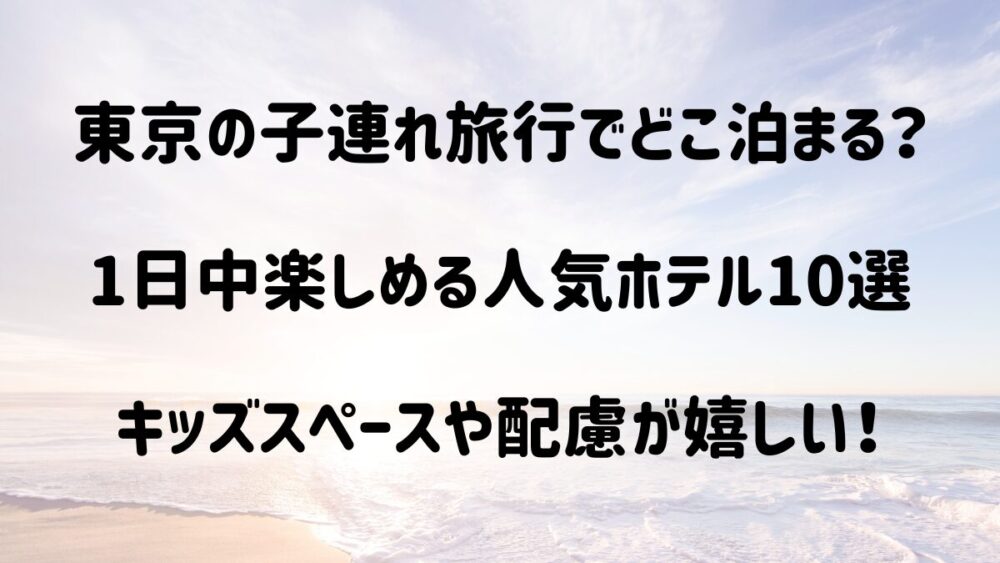 東京で「1日過ごせるホテル 子連れ 安い 東京」の条件を満たす、とっておきの宿泊施設を10件ご紹介しました。