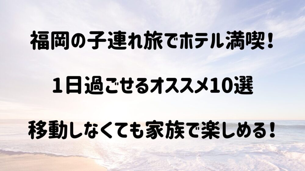 福岡県内で「1日過ごせるホテル」の条件を満たす、子連れファミリーにおすすめの宿泊施設は以下の10件です。